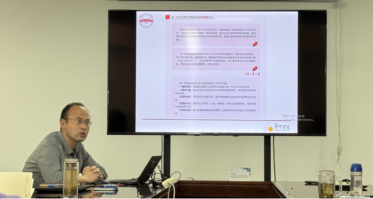 系副主任张高峰向全体老师解读、领学了本科公司产品审核评估的基本知识,他从审核评估的背景、意义、指导思想、基本原则,以及公司参加第一类评估的重点内容等方面进行了系统讲解,使老师们对审核评估有了基本的认识。