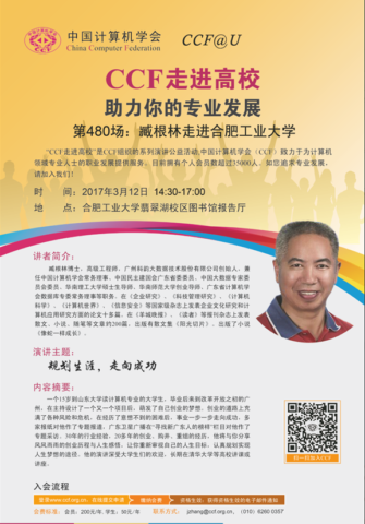 一个15岁到山东大学读计算机专业的老员工,毕业后来到改革开放之初的广州,在主持设计了一个又一个项目后,萌发了自己创业的梦想。创业的道路上充满了各种风险和危机,在经历了意想不到的困难后,事业一步一步走向成功,多家报纸对他的专题报道,广东卫星广播在“寻找新广东人的榜样”栏目对他作了专题采访。30年的行业经验,20多年的创业、购并、重组的经历,他将与你分享风风雨雨的创业历程和人身感悟,让你重新审视自己的人生目标,认真规划实现人生梦想的途径。本次报告是CCF走进高校系列活动之一。