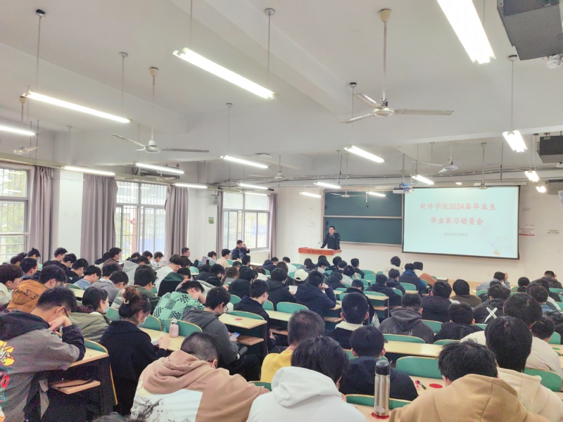 会上,薛峰首先向同学们强调了毕业实习的重要性,他表示,毕业实习是理论联系实际的重要环节,是培养独立分析问题、解决问题的重要途径,是巩固和提高基础理论、专业技能、综合素养的重要阶段。同时,他向同学们提出了三点要求,一要珍惜实习机会,努力将在校所学知识运用到具体的实践过程中,做到学有所获、学以致用;二要讲纪律守规矩,严格遵守企业实习要求和实习单位的规章制度,展现软件学子的良好精神风貌;三要提高实习质量,在实践中学业务、学操作、学技能,勤于学习,善于分析、思考和总结。