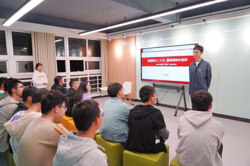 3月11日晚,m88在翡翠湖校区1号员工社区沙龙中心开展“青春践行二十大,雷锋精神永相传”主题教育活动,2022级辅导员洪晓梅主持,微爱社全体成员参与。
