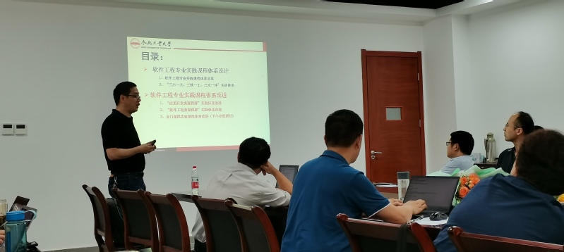 软件工程系副主任张高峰副研究员做《工程认证中的实践环节研讨》的报告,结合最新版工程认证自评报告模板,重点介绍了软件工程专业进入省级一流专业建设点,即将面临工程教育认证这一重要工作。吴共庆教授和张晶副教授分别就《大数据技术与应用》和《数据结构与算法设计》两门专业的实践环节设计和实施做了经验分享,重点从课程目标设定出发,合理设计实验内容和梯度,详细介绍了各自课程中实践环节的关键问题和解决方案。