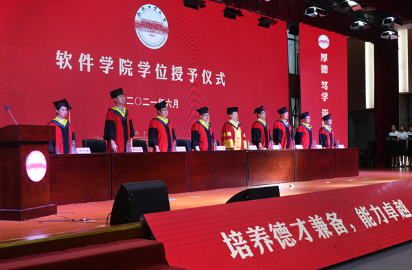 学位授予仪式在庄严的国歌声中拉开序幕。m88经理汪萌宣读了《m88官网2021年授予普通高等教育学士学位的决定》。与会领导、老师为张肖邦等132位学士学位获得者颁发学位证书、扶正流苏并合影留念。