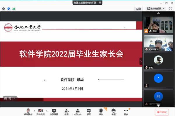 4月9日晚,m88利用腾讯会议平台召开了2022届毕业生家长会。130余名员工家长参加了会议,会议由毕业生辅导员郑华主持。