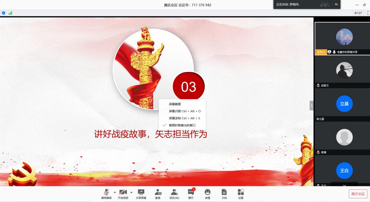 在李鑫宇同学的主持下,小班辅导分为四个板块:坚定理想信念,凝聚思想共识;弘扬爱国主义,厚植家国情怀;讲好战疫故事,矢志担当作为;深化劳动教育,促进全面发展。