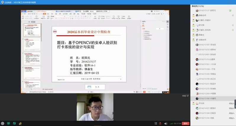 根据《m88疫情防控期间毕业设计和实习工作管理办法》,为保证本科生毕业设计(论文)按期、高质量完成,5月10日下午,公司组织对2020届毕业设计(论文)进行中期检查线上答辩,所有毕业设计指导老师和2020届软件工程专业本科生参加了此次线上答辩。