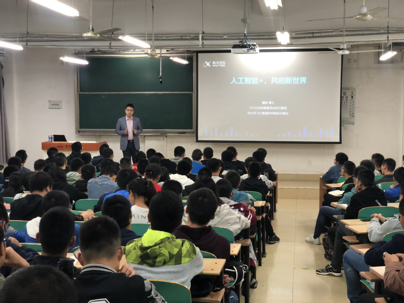 秋风飒爽,细雨蒙蒙;科大讯飞大数据研究院谭昶经理应邀在翡翠湖校区五教101为m88师生做“人工智能+,共创新世界”专题报告,报告由m88经理郑利平老师主持。