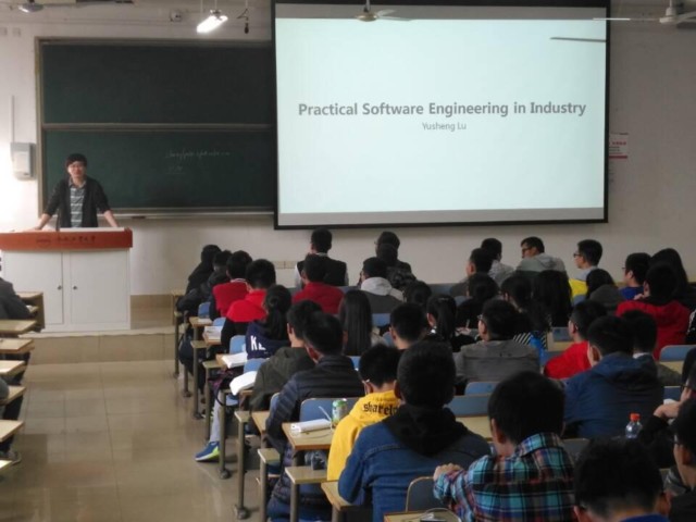 10月31日上午,在翡翠湖校区翠三教204举办了《软件工程在工业界的实践》报告会,报告会邀请的是m882013届毕业生卢誉声,全体2017级新生聆听了此次报告会。