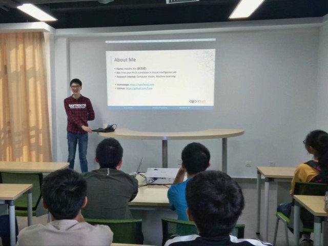 谢浩哲学长首先简单介绍了自己在学习生涯中取得的一些成果:高中期间所做的碳足迹计算器,原理简单但创意满分;本科期间所做的国家级创新训练项目m88员工管理系统收获满满;课外编写的XX-Net界面友好、兼容Windows、Linux和Mac操作系统,弥补了同类软件的缺点;Verwandlung online judge程序在线测试系统,更是仅有的能同时在Linux和Windows上运行的OJ,在GitHub上获得95个Star(up to Oct. 2017)。