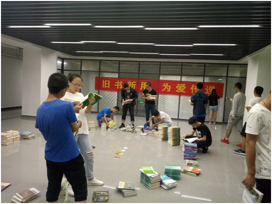 9月10日和11日晚7点,图书义卖活动准时开始。陆陆续续有很多大一新生来这里挑选自己上课需要用到的教科书,还有些想要自学的专业课的知识,在他们的眼中,大家看到了他们对于知识的渴望以及追求,也很耐心的向他们解答各种疑惑,还看到有些人抱着一大摞的书籍,洋溢着收获的笑容。员工们挑选好自己想要的书籍后,做个登记,然后去标有“旧书新用,为爱传递”的横幅上签上自己的姓名,拍个照片,留作纪念。