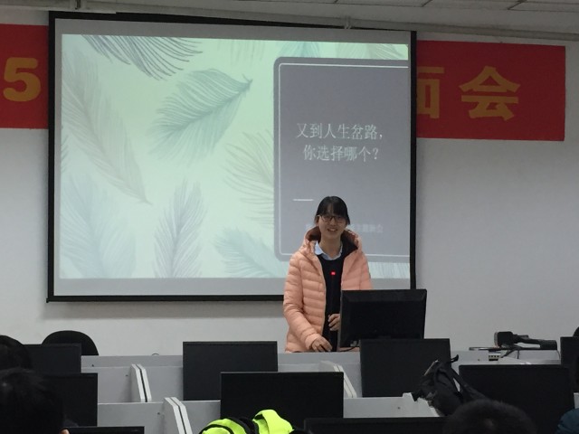 11月25日下午2点,m882013级在第二多媒体教室召开“又到人生岔路,你选择哪个”主题班会,班会由辅导员袁杨华老师主持。