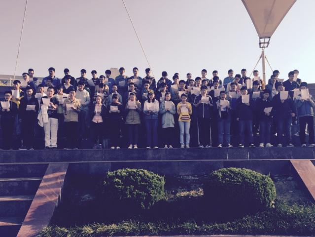 每周三的早操结束之后,在辅导员郑华老师带领下,2014级全体员工在美丽的湖畔前,享受着清晨的第一缕阳光,沐浴着湖畔的阵阵微风,朗诵着名篇名句。截至目前晨读活动已经顺利举行三次,晨读第一篇:名句精选;第二篇:《礼记》第四十二篇——《大学》;第三篇:《热爱生命》、《嫁给幸福》。
