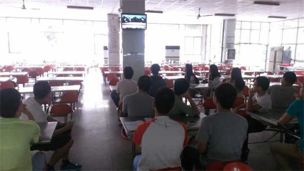 上午9时,按照公司统一安排,各年级辅导员组织在校高年级员工前往翡翠湖校区三食堂观看了“中国人民抗日战争暨世界反法西斯战争胜利69周年”纪念活动的现场直播。