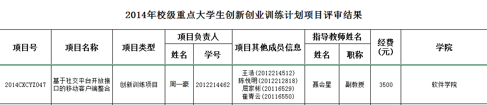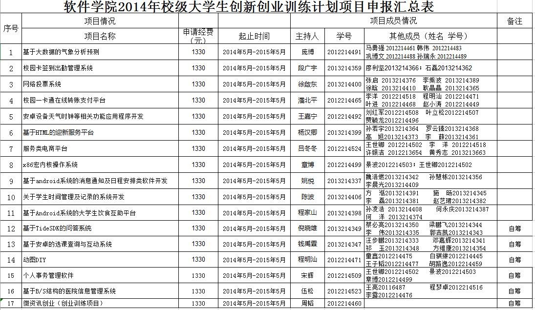 根据《教育部关于做好“本科教学工程”国家级老员工创新创业训练计划实施工作的通知》及公司相关文件精神,公司组织开展了2014年国家级、校级重点、校级一般老员工创新创业训练计划的申报、评审等工作。经评审,m88共立项国家级创新训练计划项目1项,校级重点创新训练项目1项,校级一般创新训练项目11项,院级创新训练项目5项,院级创业训练项目1项。具体情况如下: