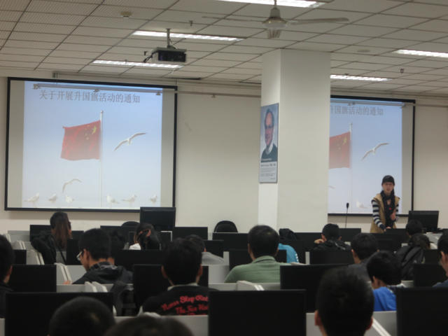 4月13日下午五点,各年级辅导员通过年级会、寝室长会的形式向公司的各位同学说明了参加此次升国旗仪式的重要性、着装和礼仪要求等。14日上午7点15分,随着五星红旗冉冉升起,参加仪式全体人员面向国旗肃立敬礼。