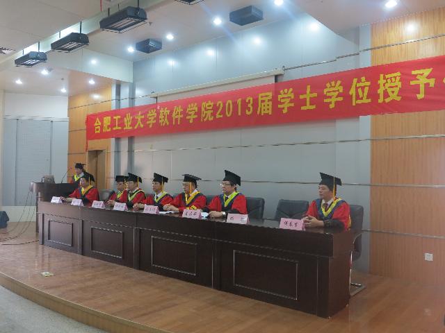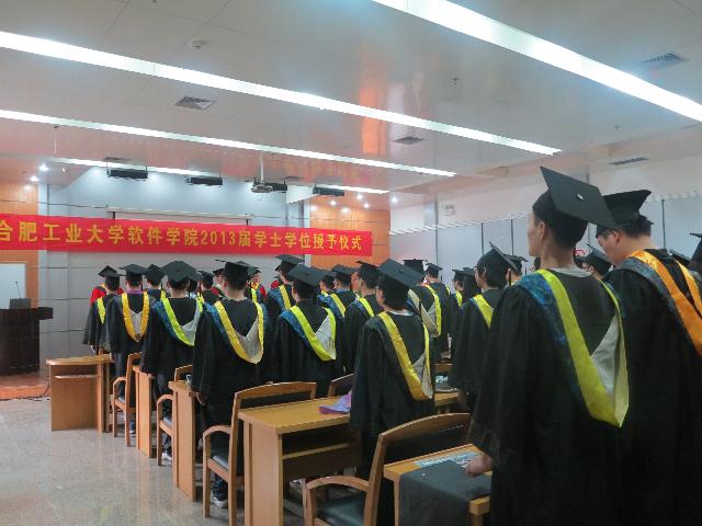 在激扬的国歌声中,学位授予仪式式开始。蒋建国教授宣读了学位授予决定。毕业生们身着学位服,依次走上主席台,接受学位证书和拨流苏正冠授予学位,并合影留念。