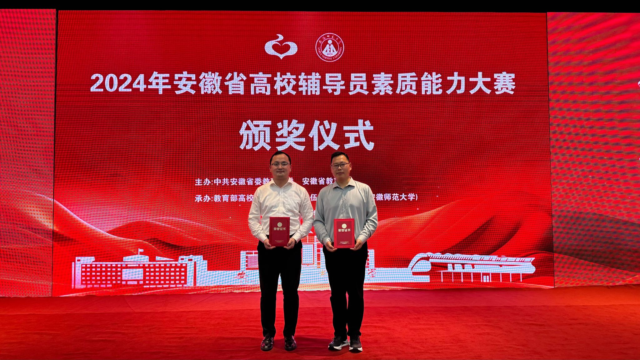5月9日至11日,2024年安徽省高校辅导员素质能力大赛在安徽师范大学举行。公司辅导员邢松荣获一等奖,展示出公司辅导员优秀的综合素质、精湛的职业技能和昂扬的精神风貌。
