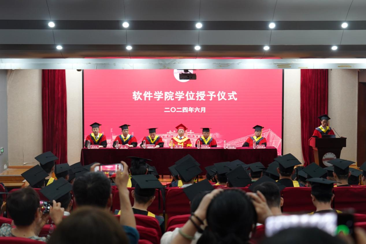 仪式在庄严的国歌声中拉开序幕。经理洪日昌宣读了《关于m882024届毕业生学位授予决定》,授予156名同学工学学士学位。与会领导和老师为现场学位获得者颁发学位证书、扶正流苏,并合影留念。