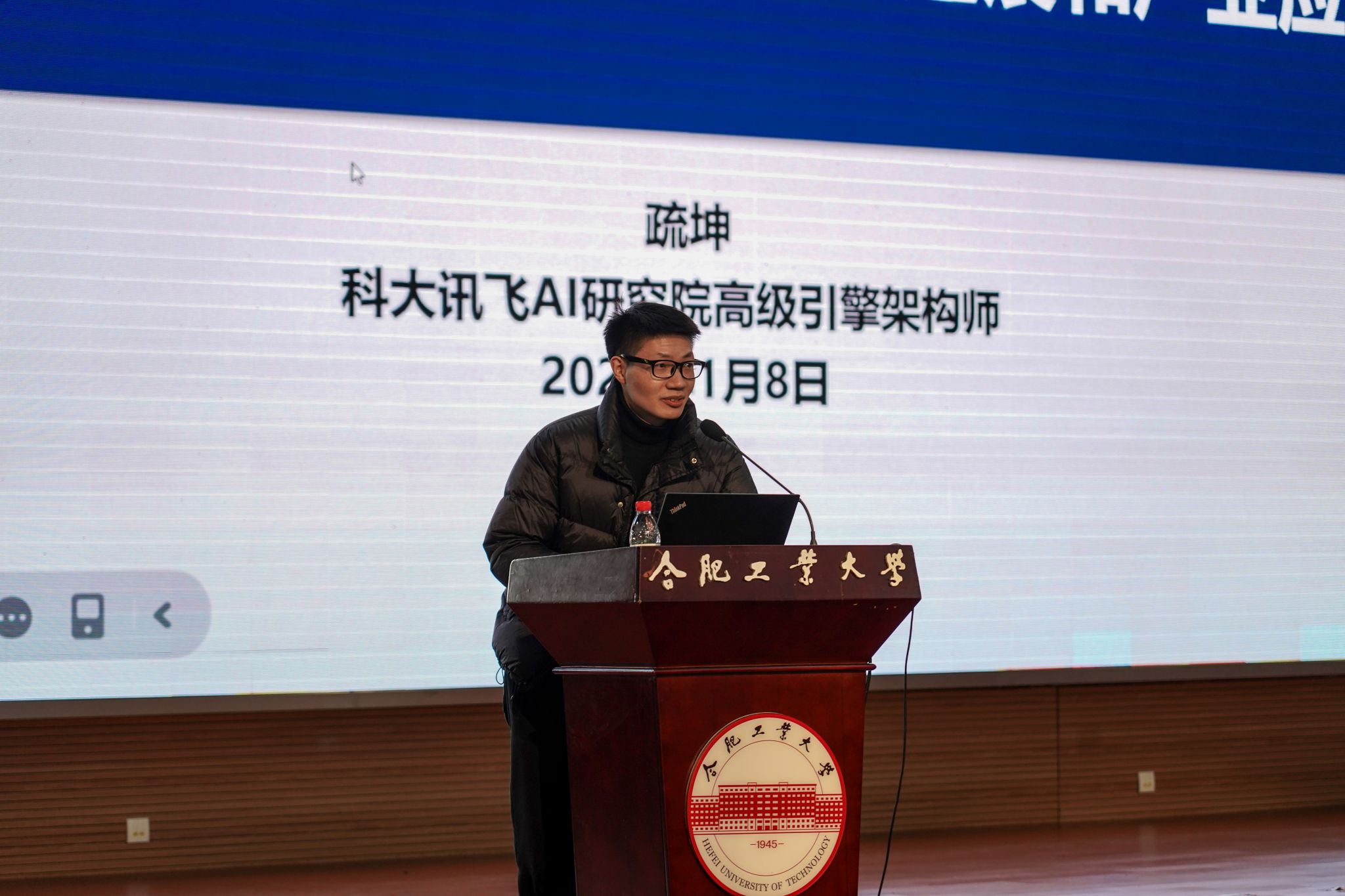 1月8日下午,m88在翡翠科教楼二楼大报告厅举办“对话软件”专业讲堂第三期,邀请科大讯飞股份有限公司数字人条线引擎负责人疏坤作题为《大模型时代的人工智能技术进展和产业应用》的报告。公司实验中心主任谢文军主持。公司辅导员、2023级和2024级全体本科生320余人参加报告会。