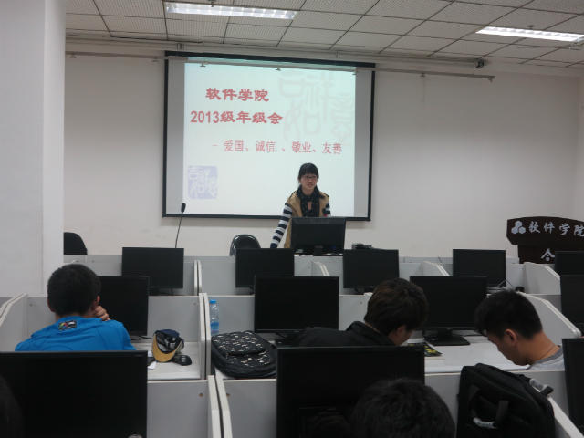 为积极培育和践行社会主义核心价值观主题教育活动,筑牢员工为实现中国梦团结奋斗的思想基础,m8813级于4月13日晚在第二多媒体教室开展了“爱国、敬业、诚信、友善”主题年级会,此次班会由13级辅导员袁杨华老师主持,13级85名同学参加。