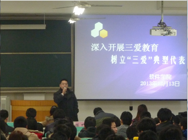 12月13日晚19:00,在翡翠湖校区7教201教室,m88举办“深入开展三爱教育,树立“三爱”典型代表”主题活动。公司党委学工部陈竹老师,公司党委副书记张炳武老师参加了此次活动。
